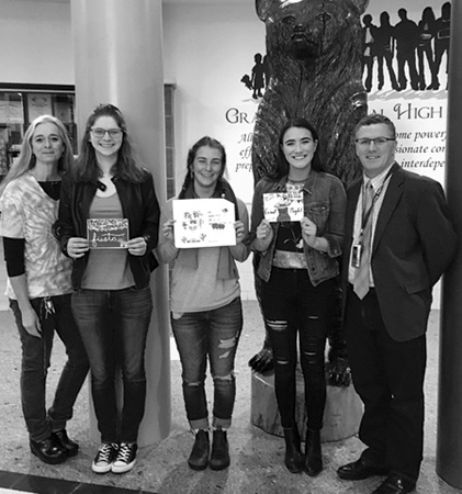 GMHS Principal, Dr. Mike Dunn, and art teacher, Hollie Hecht, presented the awards to the winners of the competition. The first place winner, receiving a $125 award, was Rory Conroy. The second place winner, receiving a $75 award, was Meghan Leonardi. The third place winner, receiving a $50 award, was Hannah Shoaf.