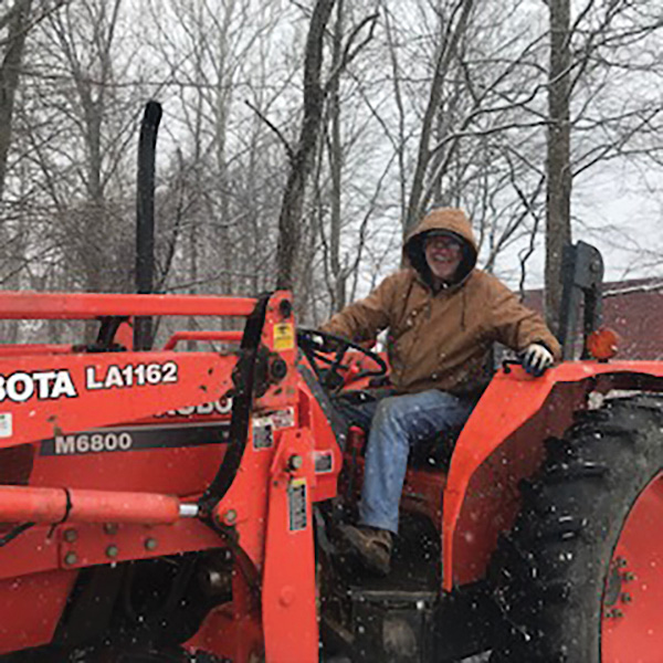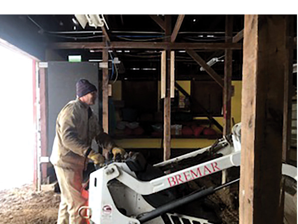 Posse ringleader Ralph Eustis man-handles a rented hard-dozer, prepping the Farm Store for a new cement floor, funded through a State of CT Small Farm Viability Grant.