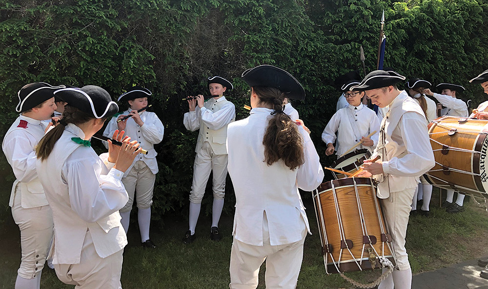 Summer is also a time for fife and drum musters, where corps gather (sometimes as many as fifty), jam and take turns performing musical selections and maneuvers.