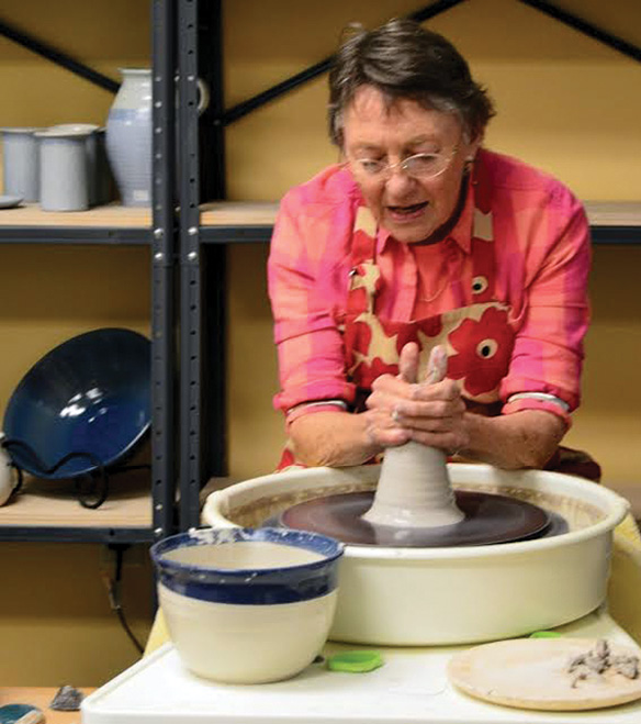 Avis Cherichetti creating pitchers and bowls in her studio.