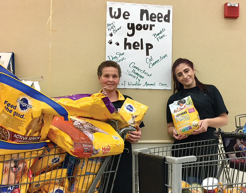 Stop and Shop employees Rosia Kennedy and Alyshia Barron show just some of the food supplies donated by shoppers. All cat and dog food will be donated to local rescues: Dog Star Rescue, Mary’s Kitty Corner, Bandits Place, Cat Connection, Connecticut Humane Society and Friends of Windsor Animal Care. We are also reaching out to those in need of pet food support due to cats and dogs being transported up from the southern hurricane areas. Thank you to all of our wonderful and supportive customers.