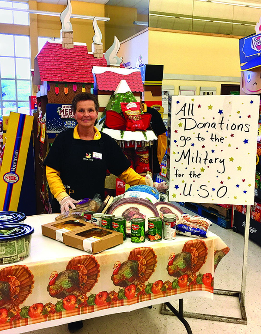 Granby Stop & Shop’s Rosia Kennedy doing what she does so well— raising funds for the USO. All of the raffle proceeds benefited U.S. service men and women in recognition of Veterans Day.