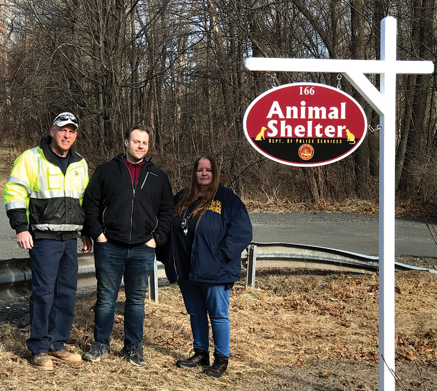 The Granby DPW was asked to look into updating the sign at the Granby Animal Shelter located on Salmon Brook Street. Quotes were received but before a decision could be made, Matt Newton owner of CES Design, had made a sign that he would donate. There is now a beautiful new sign in front of the town shelter. Check it out the next time you go by.