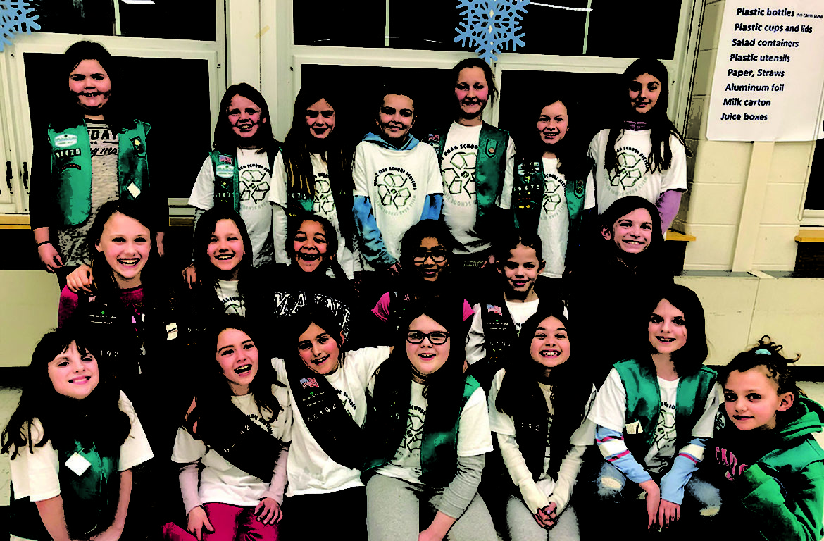 Granby Brownie Troop 66192 and Junior Troop 66475 kicked off a recycling program at Wells Road School. The scouts participated in the planning, morning announcements and direction of other students for the first weeks of the recycling program.