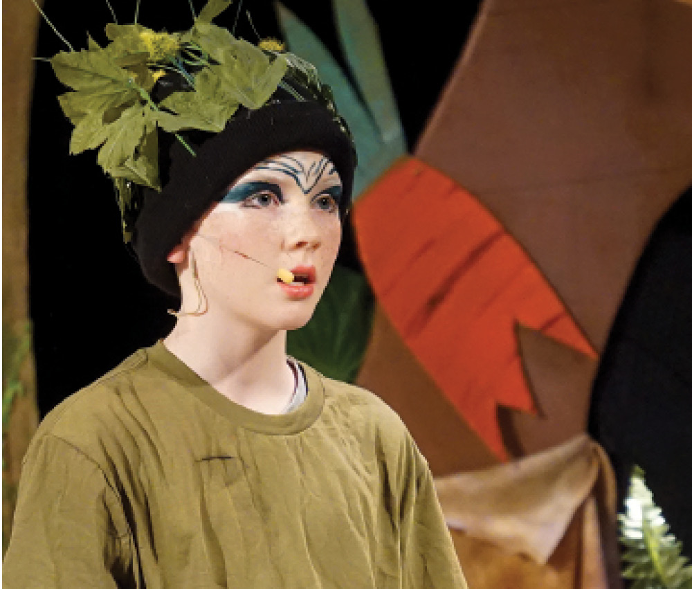 Owen Reed, also a 6th grader from Canton, helped narrate the tale as he played the Rabbit who collected information from the Gossiping Vines, led by 6th grader Lucy Oneglia of Avon. The Gossiping Vines and the Gardener not only excluded the smelly Weed, they forced out the Flower Child, Mikaela Gallo, a 5th grader from Avon, who loves the garden and the comfort and solace it gives her. In the end, it’s the forgiving Flower Child and the medicinal Weed that save the Gardener. Back from the brink of death after being infected by a rose thorn, the Gardener comes to value the Weed and the young woman who saved him despite his cruelty to her. The excluded become the included, and the community is complete.