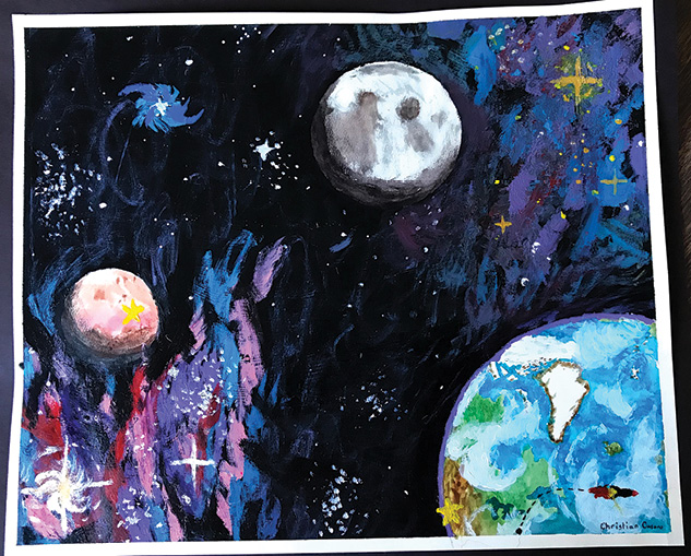 Christian Cusano, eighth grade student at Granby Memorial Middle School, is the recipient of a third place recognition in the Middle Division of the 2019 Future Problem Solving of Connecticut statewide art competition held at North Haven High School on March 30. Christian’s piece, “Interplanetary Conflict,” was based on the global issue, Mission to Moon, Mars, and Beyond.