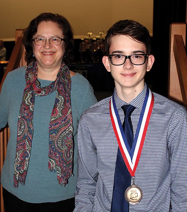 Christian Cusano, eighth grade student at Granby Memorial Middle School, is the recipient of a third place recognition in the Middle Division of the 2019 Future Problem Solving of Connecticut statewide art competition held at North Haven High School on March 30. Christian’s piece, “Interplanetary Conflict,” was based on the global issue, Mission to Moon, Mars, and Beyond.