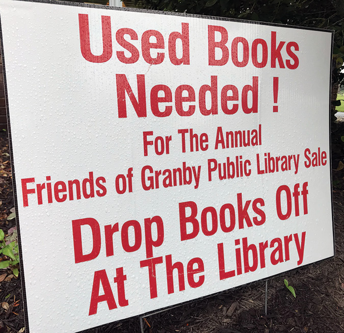 Friends of Granby Public Library have begun collecting books for the annual book sale to be held Sept. 21-23 at Holcomb Farm.