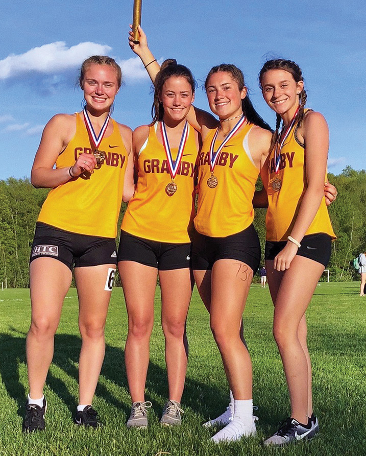 NCCC Championship Meet medalists in the 4X400 Relay are: (l-r) McKenzie Pedersen, Addy Fede, Maria Nolan and Meggie Hennessey.