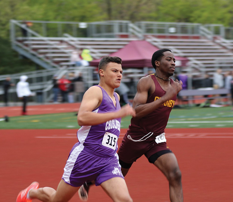 Class M State Champion Andel Smith (Long Jump and Triple Jump) beats his competitor in the 400-meter dash during a regular season meet.