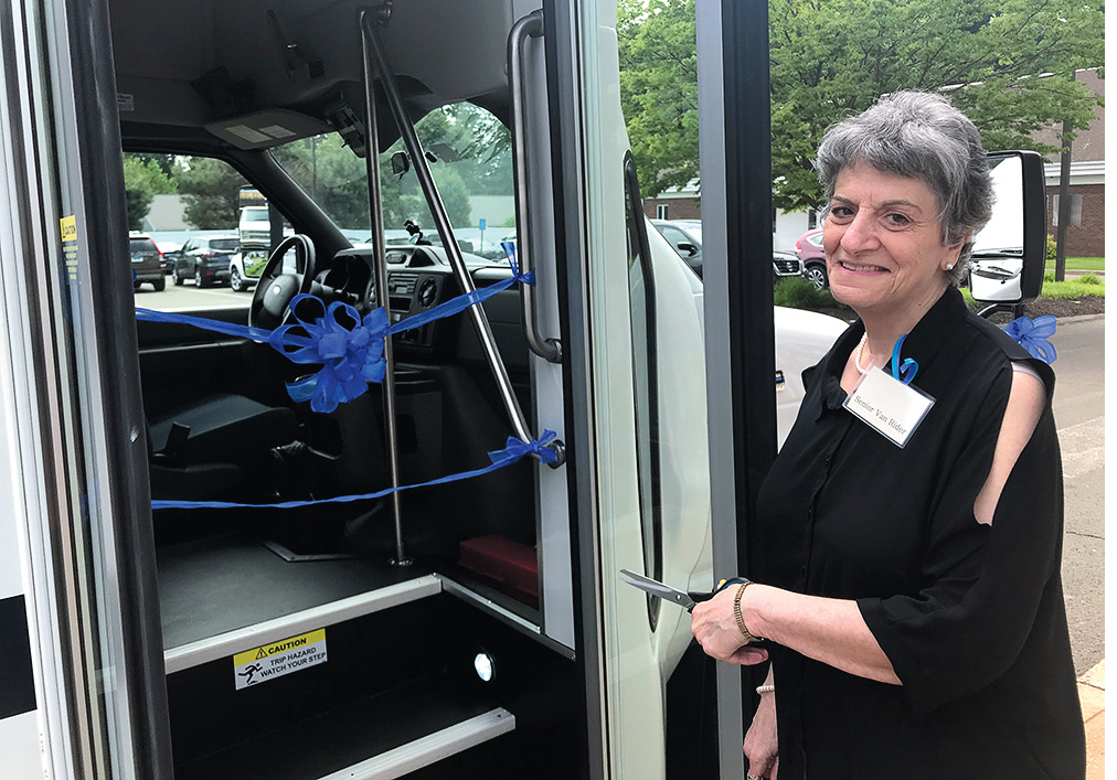 The Granby Senior Center celebrated the arrival of its new 14-passenger van on Wednesday, June 5, with a ribbon cutting ceremony, inaugural van ride and luncheon. Several members of the center joined board members from the Granby Community Fund to commemorate this special occasion. The top rider, Elaine A., did the honors of cutting the ribbon.