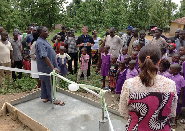 A dedication ceremony for the renovated school building and the borehole was facilitated by AEP partner Bishop Markus Dogo and Chagnon was given the honor of cutting the ribbons for both. She was also able to turn on the tap at the borehole, releasing a stream of clean water. The borehole has two 5,000-liter tanks and a generator to run the pump.
