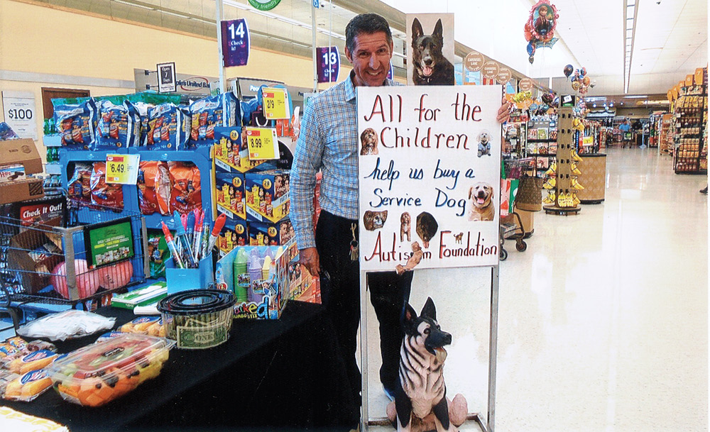Stop & Shop Store Manager Angel Cruz (and a plaster cast guide dog, courtesy of Kim Michalewicz) with the display that prompted shoppers to donate money toward a service dog. The store is grateful for its generous customers that always support these charitable causes. Submitted photo