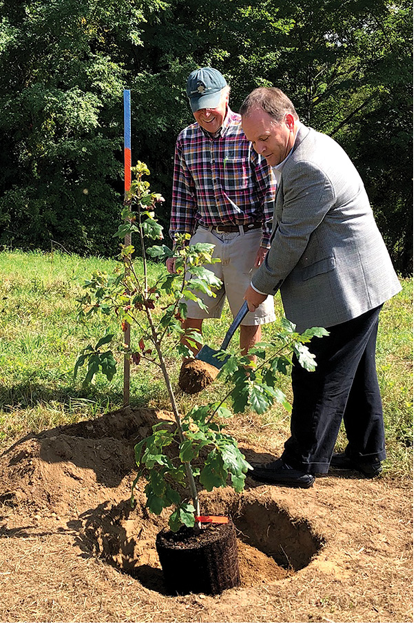 John Kehoe, a state arborist associated with the University of Connecticut, noticed that the tree for Granby had not yet been delivered. He contacted Public Works Director Kirk Severance, who put him in touch with Eric Lukingbeal, the board member of the Friends of Holcomb Farm who has spearheaded the formation of the tree trail on the eastern property of the Farm off of Day Street.