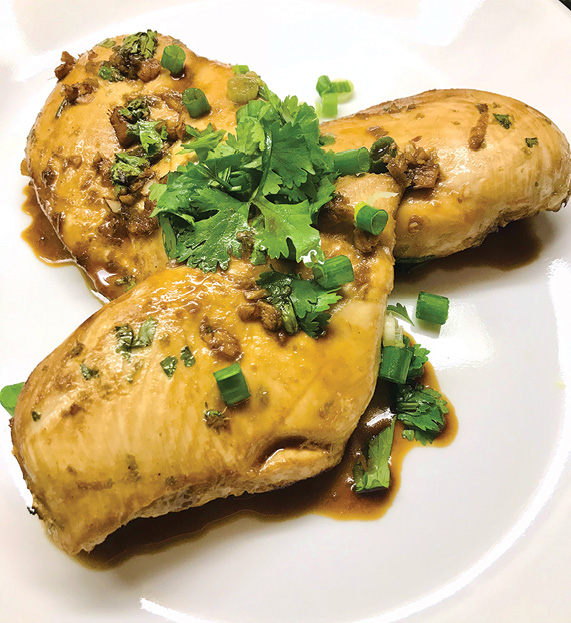 Serve topped with remaining cilantro, diced scallions and any sauce left in the pan.