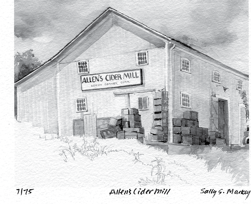 Arthur E. Allen of West Hartford bought the North Granby cider mill property in 1919. One hundred years later the roof and upper floor of the old mill collapsed and the south wall of the building fell down. (The mill collapsed either late Sunday, August 11 or early Monday, August 12, 2019.) Many Granby people expressed sorrow at the loss of another Granby landmark. Buying cider at Allen’s was a tradition, and the memories remained, even though the mill had been closed in recent years. There is so much history here.