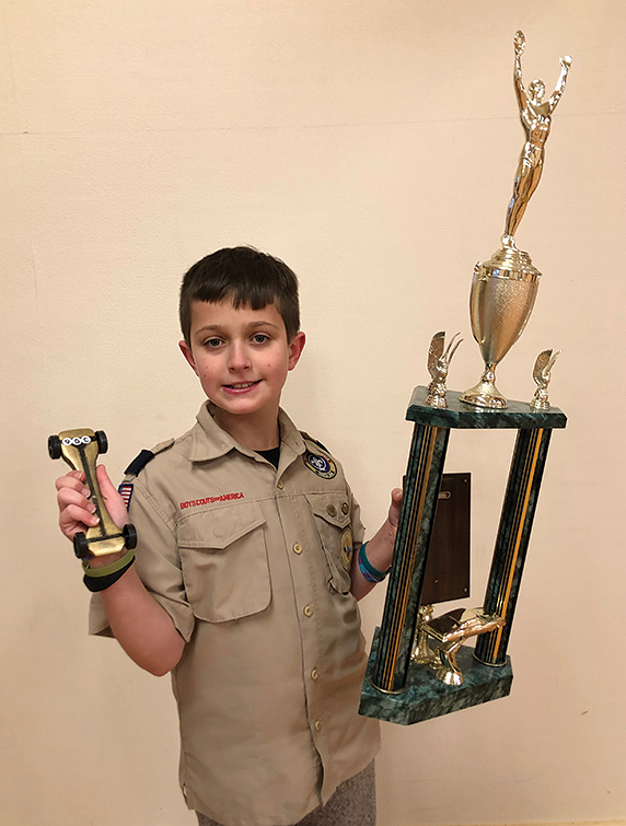 On Feb. 1, over 60 Cub Scouts from Pack 325 participated in the annual Pinewood Derby. Scouts spent weeks preparing by designing, cutting, assembling and decorating their cars—all with the hope of being the fastest to the finish line. Each den also works together to make a car that competes against other dens to be the slowest car. Congratulations to Den 1 for taking home the Golden Hub Cap award once again.
