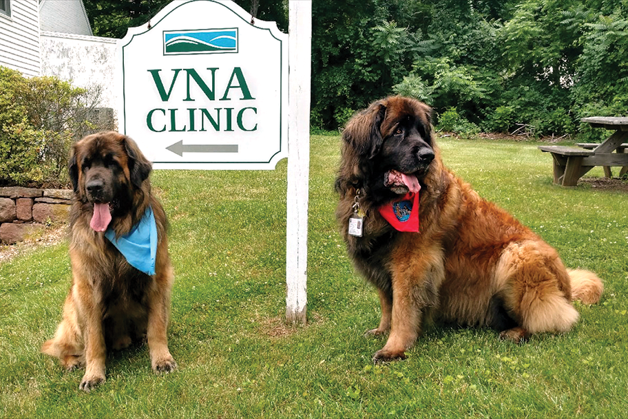 Yulee is a Leonberger, a giant breed, who works as a hospice and home/facility bound companion volunteering along with his owner Vic Neumann at the Farmington Valley Visiting Nurse Association. Yulee follows in the tradition of his dad, Vikahn, who recently passed away. Vikahn provided comfort to the families in Newtown following their school tragedy; now Yulee is walking in his father’s pawprints by providing comfort to patients at Connecticut Children’s Medical Center (CCMC), nursing facilities, in hospice settings and schools, and in private homes. All dogs who visit patients need to be certified pet therapy dogs; Yulee is certified through Therapy Dogs International.