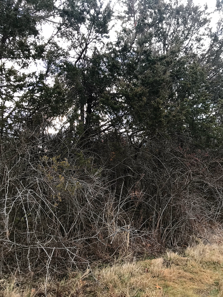 Before Clearing and After Clearing — Thanks to Eric Lukingbeal, Walter Ford, and Walt Zultowski, one of the recent “work parties” that tackled invasives and interlopers along the Holcomb Farm east fields.