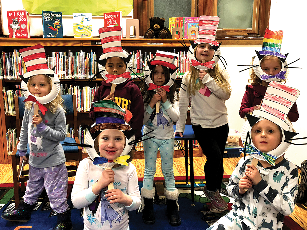 Children made Cat in the Hat masks and sang Happy Birthday Feb. 27, at Cossitt Library to celebrate the children’s author’s birthday. The activity was part of the weekly Bedtime Stories program that is held there Thursday evenings at 6:30 p.m.