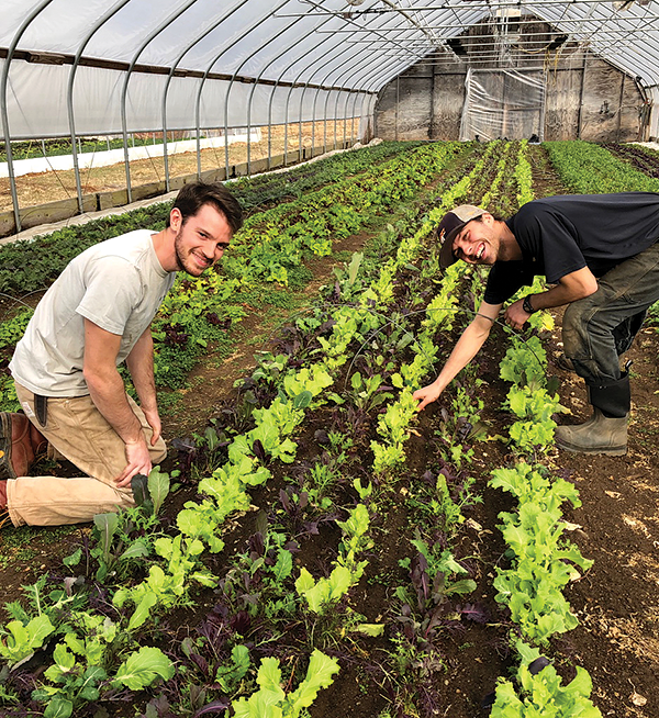 It was a lovely March day; Tom and Jesse were finishing up their work and happy to take a few moments to introduce themselves to Drummer readers. Tom Spatcher and Jesse Parker are starting their fourth and second years, respectively, as Farmer Joe O’Grady’s right-hand men. They work all winter, maintaining the greenhouses and packing orders of winter vegetables for area restaurants, but as the days grow longer, so does their workload. On this particular day, they were studying O’Grady’s seeding chart, mapping out where they would plant the onions and shallots, the first of the planting, as the seedlings of these veggies are the slowest to settle into the soil and grow. Next will come the celery, followed by seeding all the other produce grown by the farm. This is the beginning of the busy months, for after the seeding comes the transplanting, cultivating, harvesting and cleaning the produce for market.