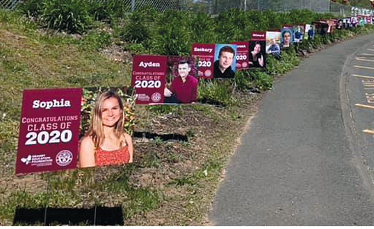 In an effort to give the GMHS Class of 2020 the recognition they have earned, the Granby Education Foundation had signs for each student printed and posted them on the entry drive to the high school the day the caps and gowns were distributed.