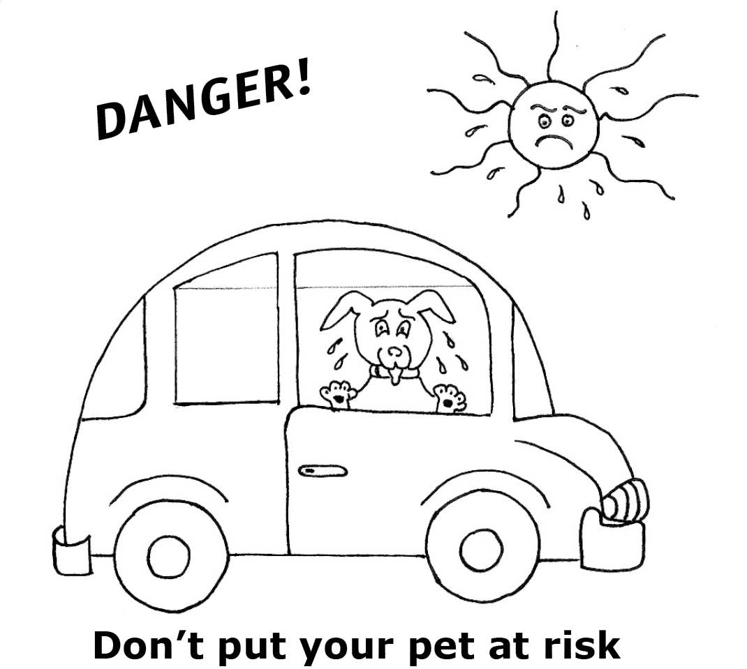 Even with the windows down a bit, your car’s temperature can climb to dangerous levels in just a few minutes, causing your pet to suffer heat stroke. Please leave your best friend at home while you do those summer errands.