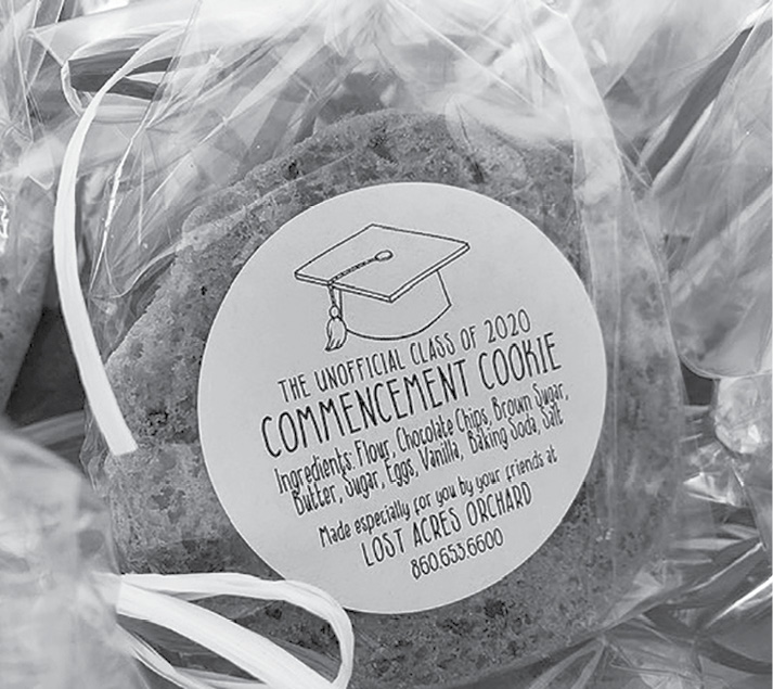 The senior t-shirt reflects the pandemic that changed the course of their last year at GMHS. Lost Acres Orchard provided cookies as a special treat.