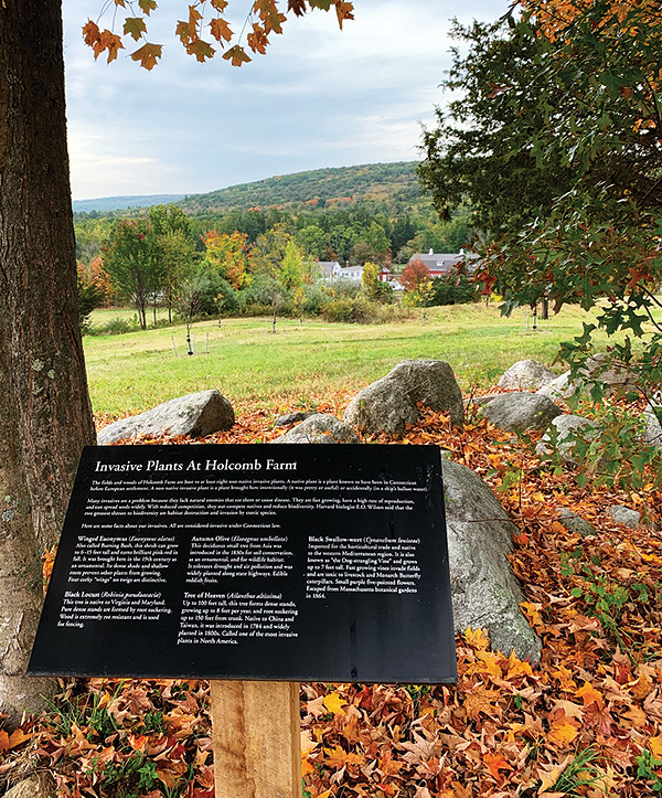 In addition, the Tree Trail added eight new interpretive signs, which provide information on a variety of topics including farm history, invasive plant species, geology and specific tree species. These signs were purchased with funding from a Pomeroy-Brace grant and a Granby Education Foundation grant. We also added 25 additional tree labels to mature trees, bringing the total of labeled trees to more than 100. Many thanks to our volunteers including Barry Avery, Sue Canavan, Joel Danke, David Desiderato, Jill Ford, Walter Ford, Jack Lareau, Peggy Lareau, Heidi Lindberg, Eric Lukingbeal, Shirley Murtha, Bill Simpson and Lynette Simpson.