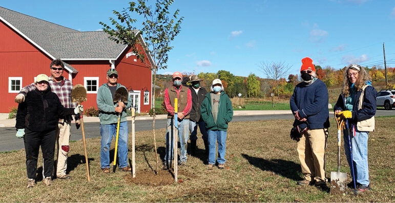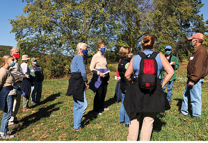 In mid-October, what was left of the warmth of the autumn sun offered a perfect day to share the fast-evolving Holcomb Farm Tree Trail with members of the Hartford Garden Club. Thanks to longtime Friends of the farm Put and Nannie Brown, members of this organization came to learn about the work that has been done to fight invasives, reclaim meadows and fields, and plant, nurture and label trees for environmental and educational advancement. The group spent several stunning New England autumn hours learning about the work of the Friends of Holcomb Farm through its intrepid Tree Trail volunteers, including Eric Lukingbeal, Susan Canavan and Barry Avery. The Garden Club members were so inspired by their work that the Garden Club made a financial gift to the Tree Trail, in honor of Eric and his crew.