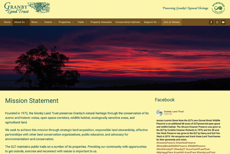 Check out the Granby Land Trust’s new website at granbylandtrust.org, where you will find: beautiful photos of GLT properties, trail maps for each of our six trail systems, a link to Avenza maps—an app with which you can track your GLT adventures via GPS, an events calendar showcasing upcoming GLT events, an interactive map where you can view all of the properties the GLT owns or upon which the GLT owns conservation easements, suggestions for other trails to explore in the area, and the latest news from the GLT.