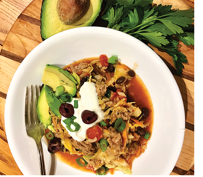 I adapted this month’s recipe from one I found on Peaceloveandlowcarb.com—it’s super easy and a one-pan wonder, my favorite thing. It is also fantastic as a leftover as the cabbage stays crunchy, as long as you don’t overcook it. I hope you all have a safe and happy Thanksgiving.
