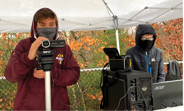 Nick and Owen, co-founders of the GMHS Bears Broadcast Club, initially approached principal Michael Dunn and athletic director Brian Maltese with a suggestion to broadcast games and other school events as a way for the community to view its students in action. When asked about the club’s origin, Nick said, “We knew we couldn’t replace ‘packing the den’ but we wanted to find a way to make the school year feel more normal.”