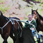 The Hennessey’s golden retriever loves to sit on the front lawn and watch the horses trot up and down North Church Road throughout the morning as part of their race training.