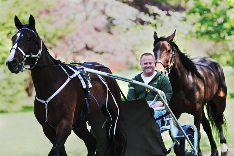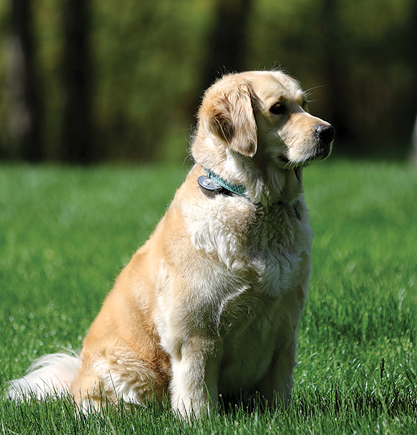 The Hennessey’s golden retriever loves to sit on the front lawn and watch the horses trot up and down North Church Road throughout the morning as part of their race training. Photo by Kelly Hennessey