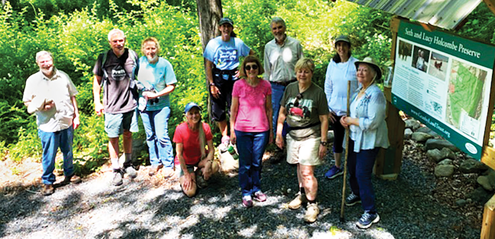 Granby Land Trust (GLT) board member and middle school science teacher Jen Plourde led a group of hikers on an educational tour of the GLT’s Seth and Lucy Holcombe Preserve in North Granby on June 5, as part of Connecticut Trails Day. Connecticut Trails Day is organized by the Connecticut Forest and Park Association as part of a two-day national Trails Day event that takes place annually. It is a great time to pay tribute to all the wonderful trails our country has to offer. The GLT’s event was one of 180 events that took place in Connecticut alone this year.