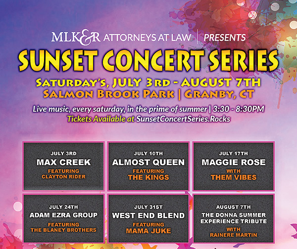 Band Camp: For grades 5-12. 9 a.m.-12 p.m. Monday–Friday, July 12-16 or July 19-23, at Granby Middle School.