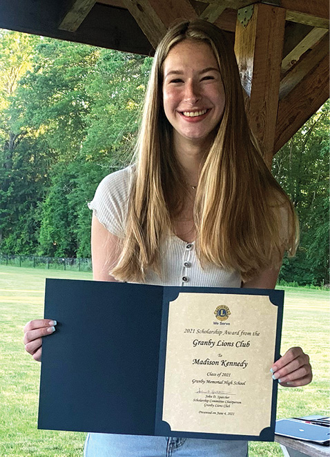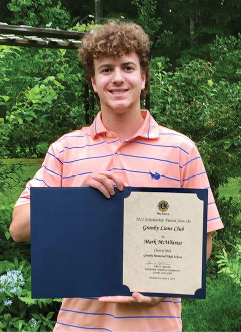 The Granby Lions awarded $2,500 scholarships to three Granby Memorial High School 2021 graduates: Ty de los Reyes, attending Central Connecticut State University; Madison Kennedy, attending Virginia Polytechnic Institute and State University; and Mark McWhirter, attending the University of Connecticut. Submitted photos