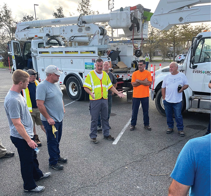 Eversource sent a large contingent of crews and support personnel to Louisiana to assist with the massive power restoration after Hurricane Ida. Andy Ouellette (in yellow vest), an Eversource lead safety advisor from East Granby, is shown with the team in Raceland, a community hard hit by Ida. Ida’s hurricane-force winds were destructive, bringing trees down onto power lines, snapping utility poles devastating the electric system and leaving more than a million people in the state without power. Submitted photo