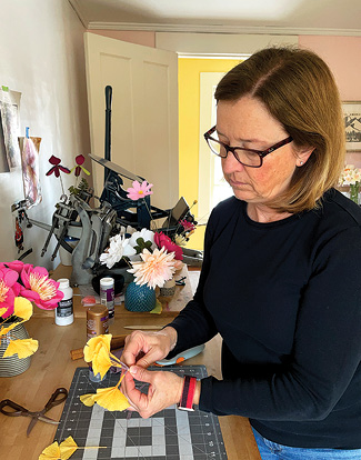 I started making crepe paper flowers several years ago. I had read about a new instructional book and decided to give it a try. Once I figured out where to buy quality paper, I was hooked. Professionally, I worked as a graphic designer and still do design work for the Friends of Holcomb Farm and the Granby Education Foundation, including most recently, the signage on the new trail kiosk at the Holcomb Tree Trail.