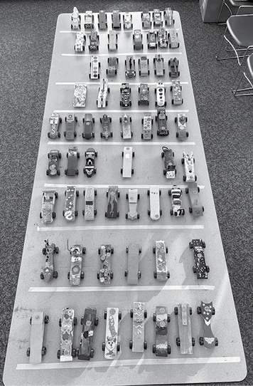 This year, 63 cars were entered into the race, including 58 Girl Scouts and five siblings. Each car was beautifully photographed and displayed on an online voting platform prior to the event, and families were encouraged to log in before the start of the race to vote for their favorite cars. Design categories included most complicated wood carving, most Girl Scout pride, best wedge and most bling, to name just a few. The design award winners were announced during the race.