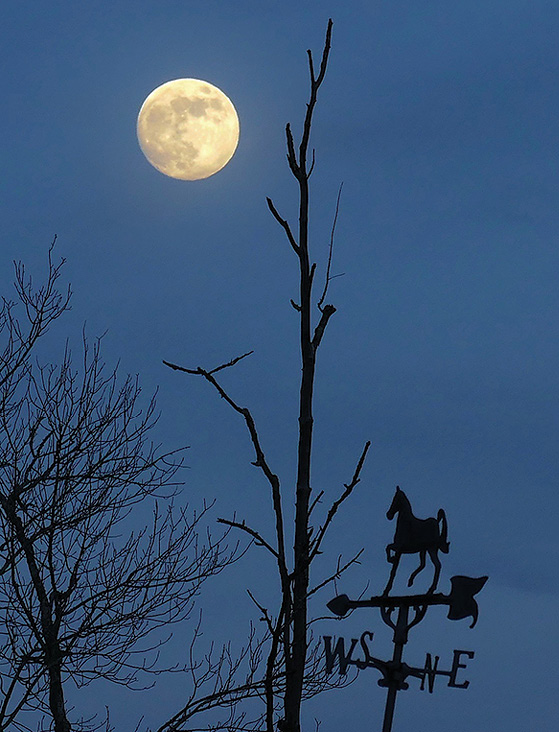 The December full moon, also known as the Cold Moon, was a sight to behold on Dec. 17. GLT member Don Shaw captured this dramatic picture of it rising over the weathervane on the GLT’s Katan-Ensor Barn in West Granby.