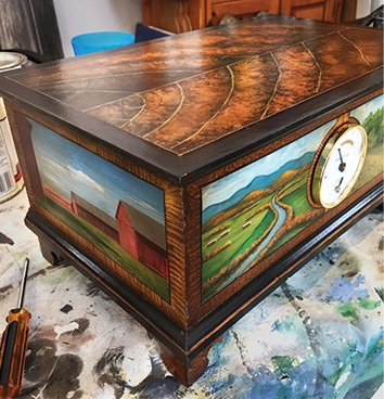 I am currently creating custom-made wooden humidors depicting scenes of the Connecticut Tobacco Valley or memorable places for the customer. This project is particularly meaningful to me because both sides of my family were tobacco farmers. It is very satisfying when the completed project is so well received by the customer.