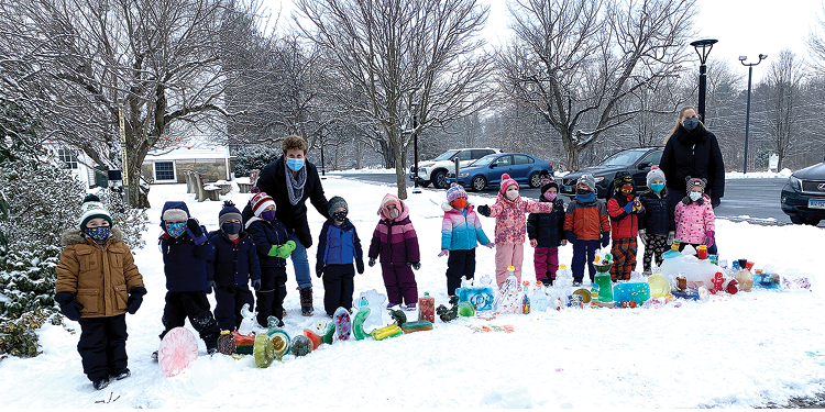 During the last week of January, Valley Pre-School students brought back a beloved tradition—the return of ice sculptures. At home, students created their own structures made of ice and other materials and brought them to school to create a class sculpture.