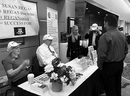 Guilford campaign supporters and Republican delegates visit Regan’s table at the convention. Photos submitted by Regan campaign.