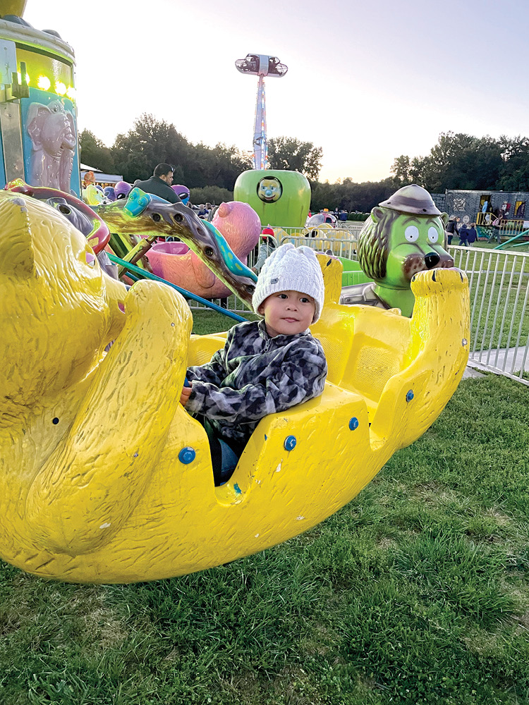 It was a bit chilly Friday night, Sept. 23, for the first Celebrate the Valley event, but that didn’t stop this youngster from enjoying this animal-themed ride. Photo by April Isaacson