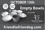 Join Expressions Pottery Workshop, the Women’s Club of East Granby and Friend to Friend for the 22nd Annual Empty Bowls fundraiser on Saturday, Oct. 15, 11:30 a.m.-1:30 p.m. at the East Granby Community/Senior Center.