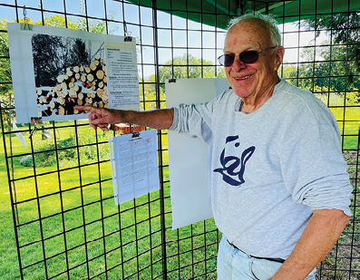 Bill Bentley tells some visitors about a logging project at Wilhelm Farm.