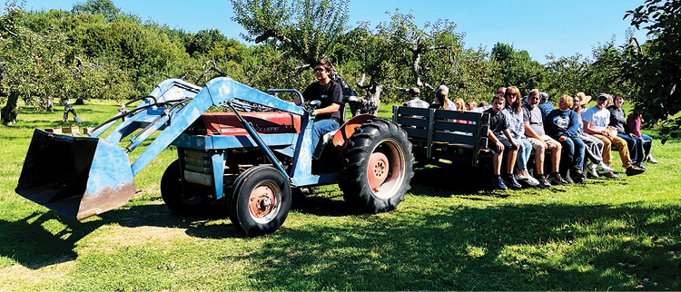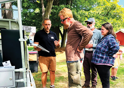 Andrew Hurczyn teaches some visitors about CBD products at Addison Farm.