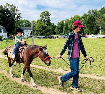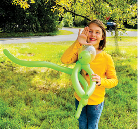 A visitor to the Granby Grange delights in the balloon “alien” created there for her.